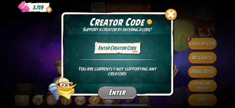 We recently launched Creator Codes in Angry Birds 2; codes you can use to support your favorite Content Creator in-game!